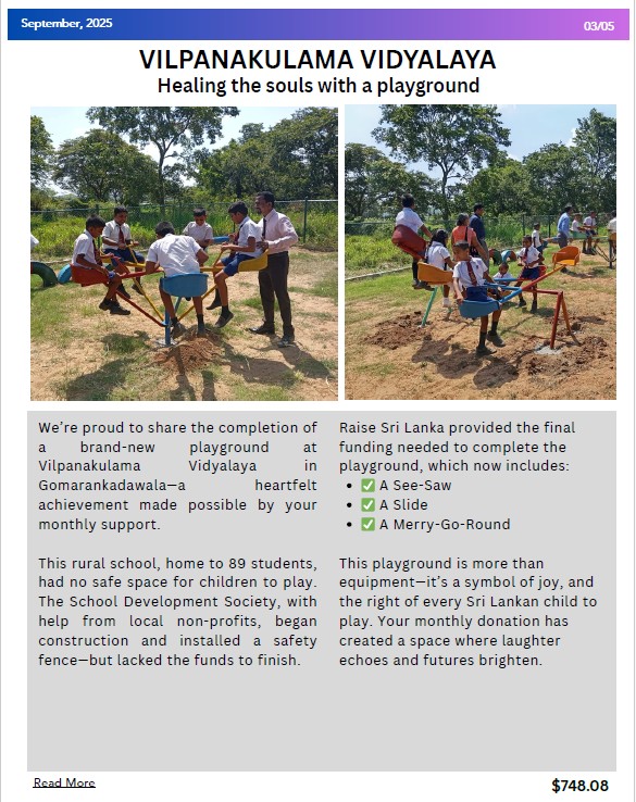 This month at Raise Sri Lanka has been a beautiful reminder of what compassion and community can achieve—thanks to you.