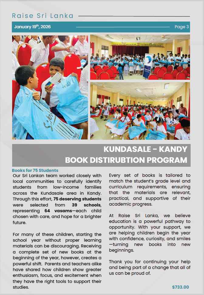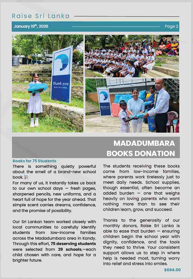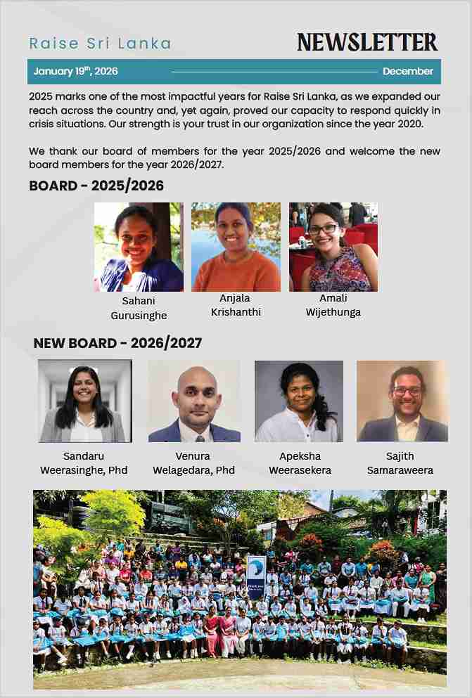 Attached is the Raise Sri Lanka December 2025 Newsletter, a heartfelt reflection of lives touched because of your compassion, consistency, and belief in education.