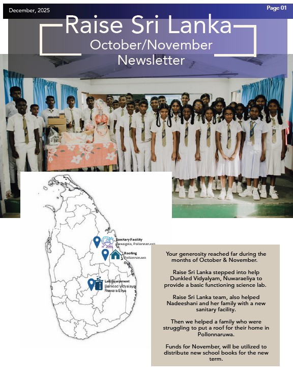 As we come to the close of another meaningful month, we are deeply humbled to share the impact you helped create across Sri Lanka. Attached is the Raise Sri Lanka October/November Newsletter, a heartfelt reflection of the lives touched because of your compassion and commitment.
